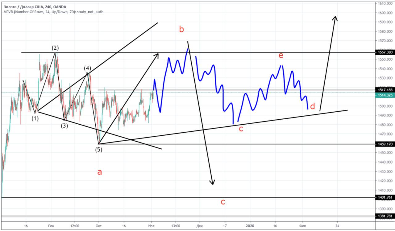 Золото. После выхода данных на прошлой неделе рынок подтвердил восходящую модель. Сформировался восходящий импульс, который подходит к завершению. После него ожидаю коррекцию от которой буду ориентироваться на покупки, в зависимости от структуры. На импульсе открывали покупки в моменте выступления главы фрс на снижении, подтверждение можно увидеть в телеграмм канале. Сделки зафиксированы и на данный момент рассматриваем краткосрочные продажи. Частично сделки открыты, на росте планируем наращивать и выходить на корректировке. Проще говоря планируем отработать всю волну примерная структура обозначена на графике. Интересно, что после восходящего движения и где оно завершится. Рассматриваю два сценария: 1) сформируется сильная волна вниз (с) с ориентировочными целями 1400-1380 (снижение ниже не исключается, будем смотреть на структуру) и 2) формирование большого треугольника, структура (abcde) также обозначена на графике. Формирование обеих моделей будет зависеть от структуры и силы первой и третьей волны это уже по факту.