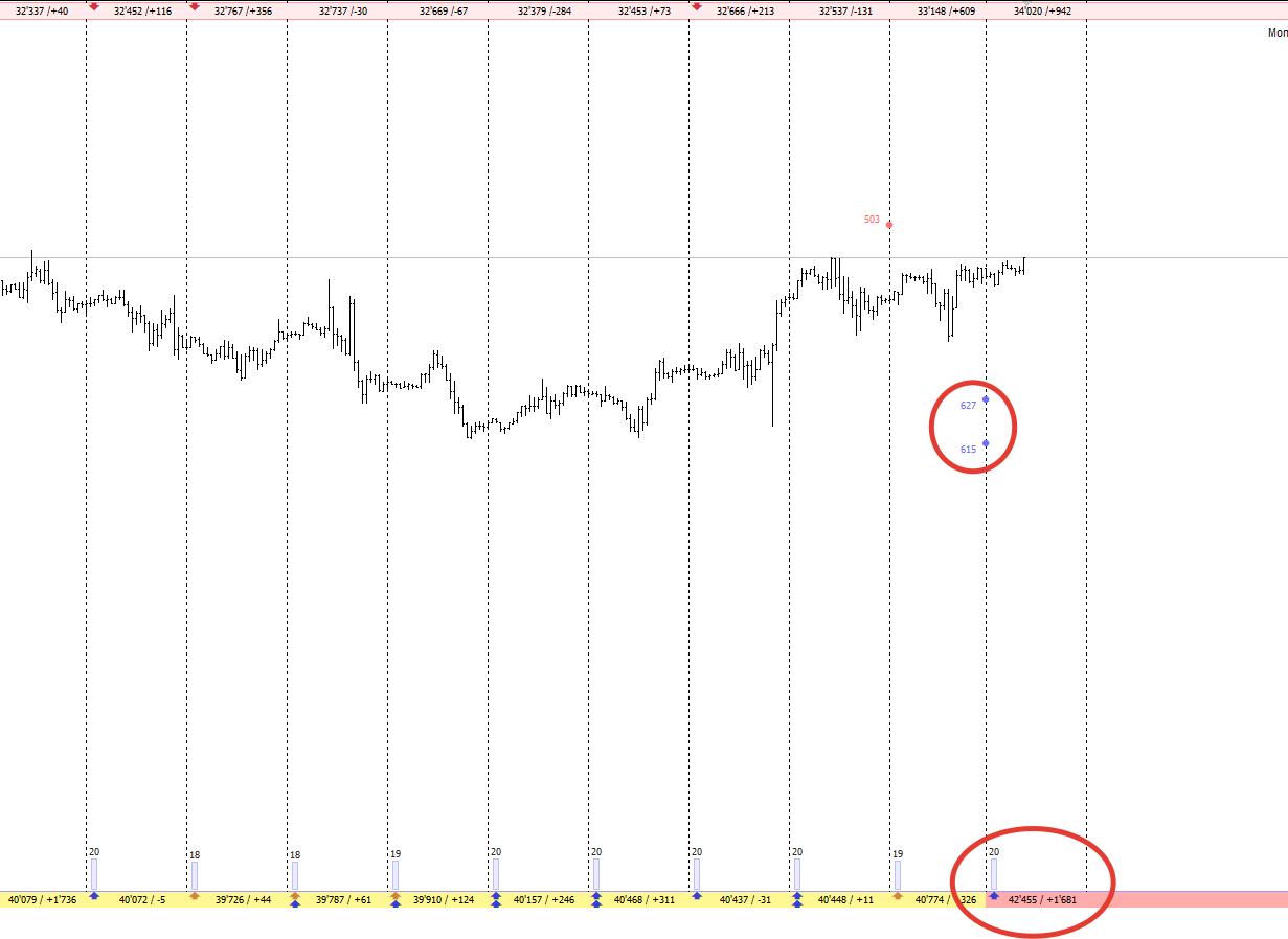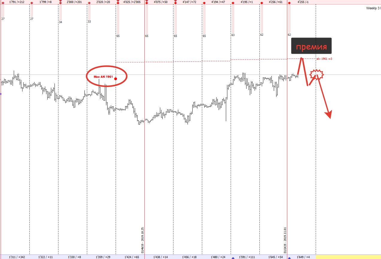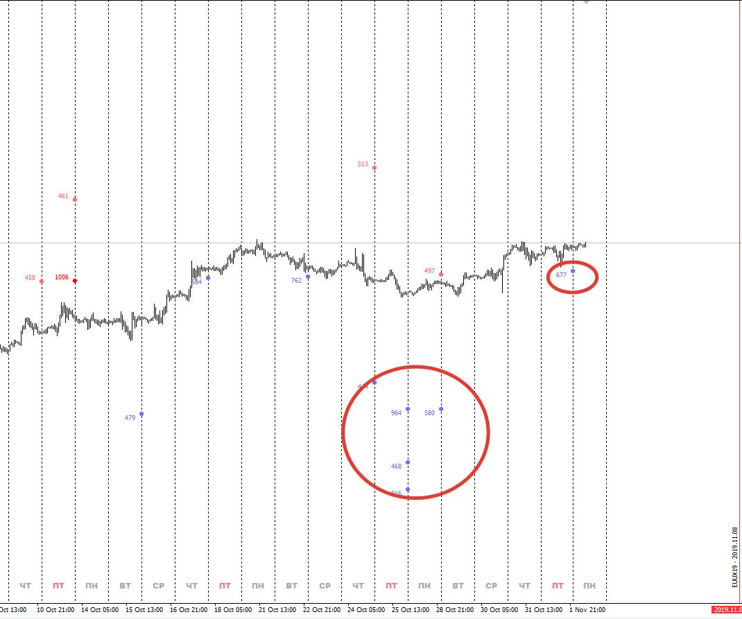 Валюта в плотную подошла к уровням крупного хеджа колами, на новом недельном контакте, поэтому здесь покупки я пока прекращаю, начинаю думать о продажах, но пока не тороплюсь, нужен сигнал от продавца, который в идеале должен выглядеть так: