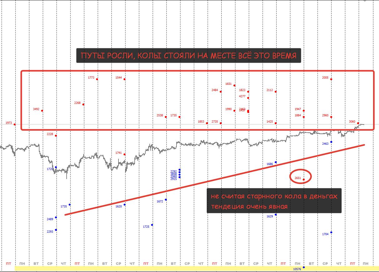 На месячном контракте, колы так и не стали двигаться вверх, хотя путы весь месяц поджимались к "хаям" о чем мы с вами множество раз говорили!