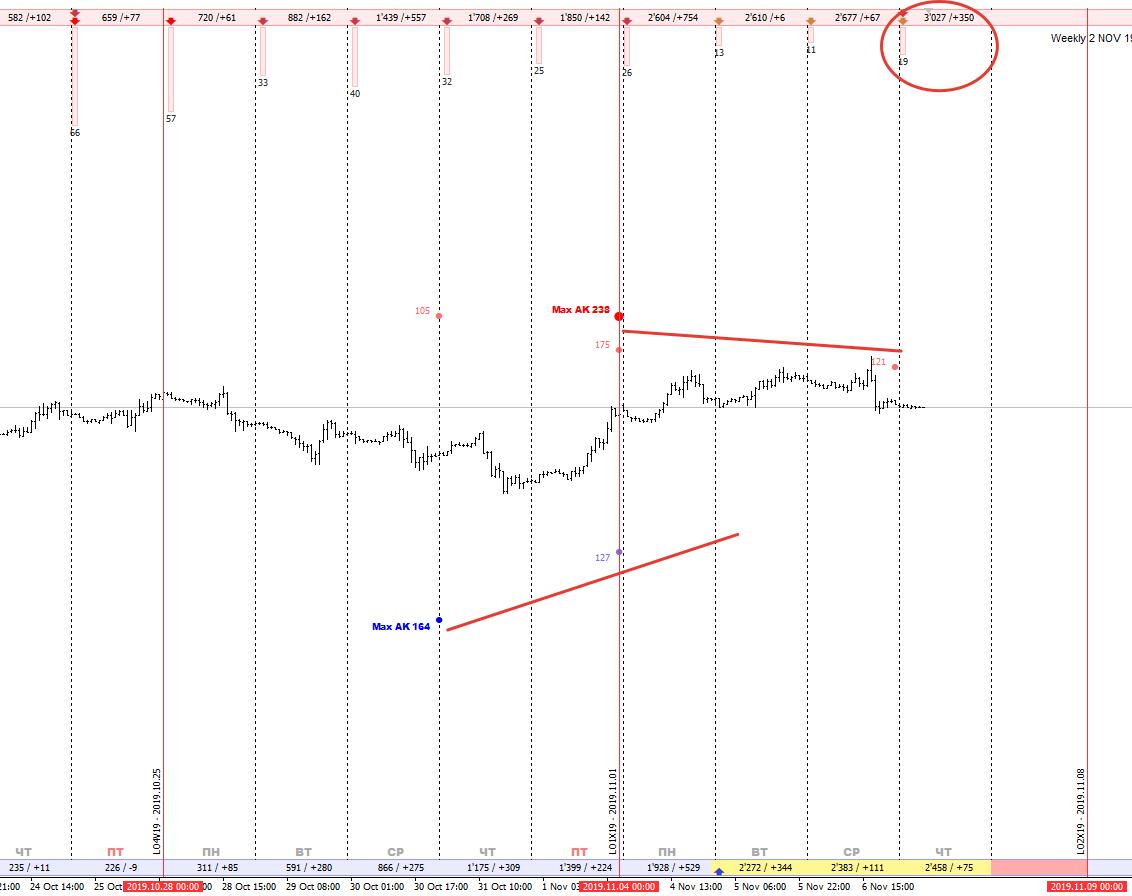 Недельные контракты немного негативней, но тоже не видно ничего критичного, слишком смешные объёмы в 350 контрактов: