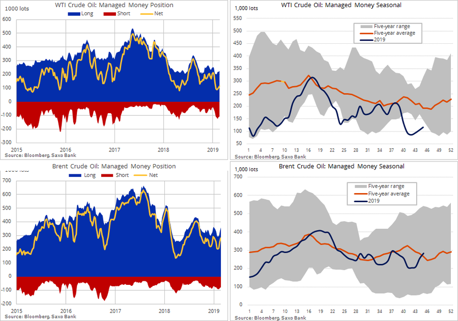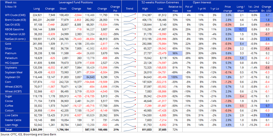 На прошлой неделе чистые показатели позиций трейдеров в сырьевых товарах достигли трехмесячного максимума на 587 тыс. лотов на ожиданиях сделки США и Китая.