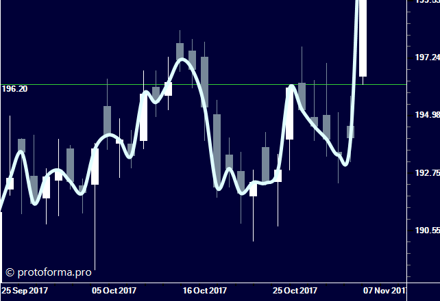 К нему цена подошла пробив уровень НР 233.87 ЧМП (чистой модели притяжения, в глобальном движении она по тренду) на дневном графике: