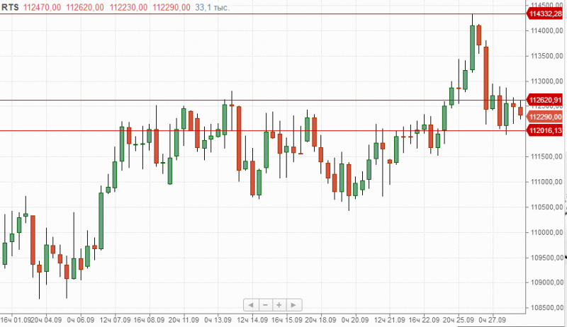 фРТС на прошедшей торговой сессии пробовал на прочность уровень поддержки 112000п., проход которого может усилить продажи с целями в район 110500п.