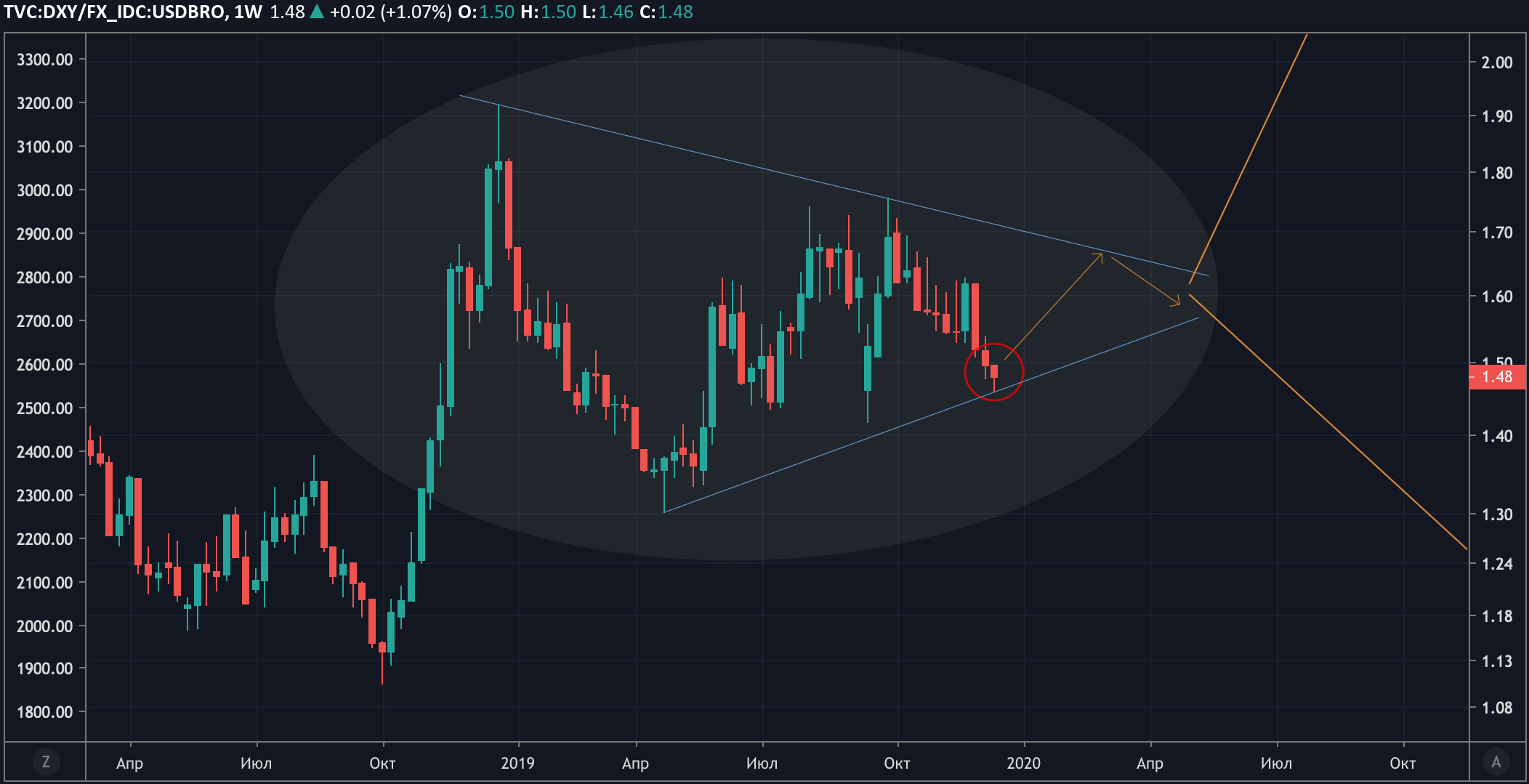 Upside выхода из него выше. И может быть связан с финальным дефляционным движением и завершающей волной низких цен на сырье в 21-23 гг.