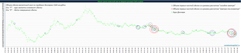 Объем сделок валютный своп по продаже долларов США за рубли, по данным статистики ЦБ 2015 - 2017 г.: