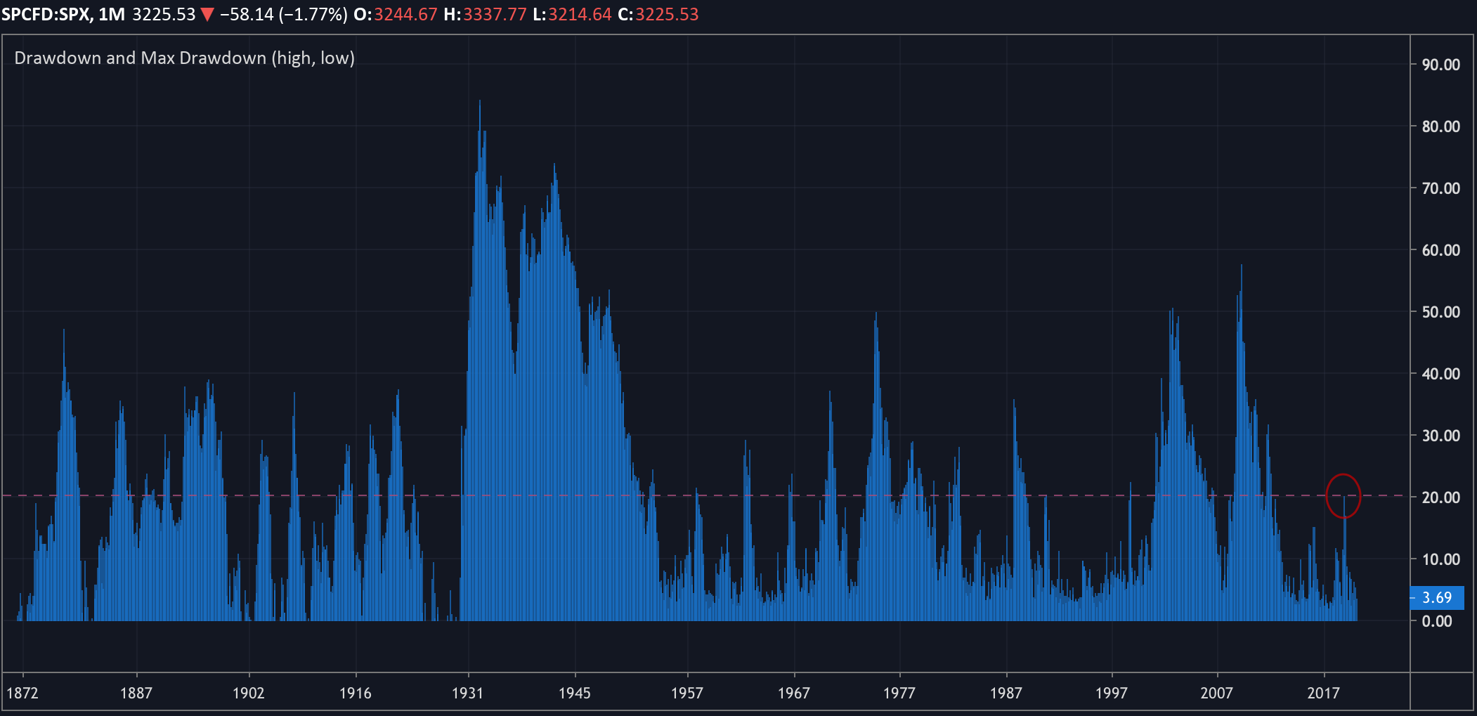 Это месячный график просадок SPX за всю историю: