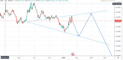 Нефть уйдёт на 45. Движение вниз не закончено. Те попытки отскока, которые происходят, могут и не реализоваться в том виде как все ждут. Гэп закроем конечно, но на большее я не расчитываю. При уходе к 58-59, можно искать точку для шорта.