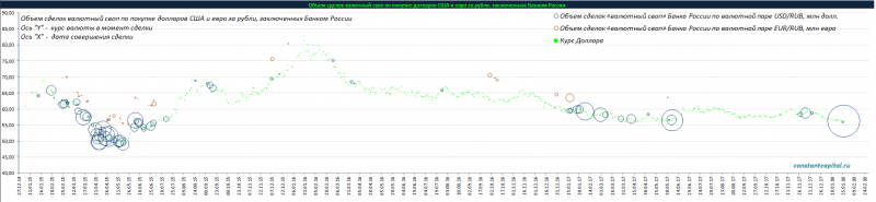 Объем сделок валютный своп по покупке долларов США и евро за рубли, по данным статистики ЦБ 2015 - 2017 г.: