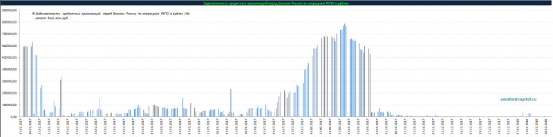 Задолженность кредитных организаций перед Банком России по Операциям РЕПО, находится на минимуме текущего года.