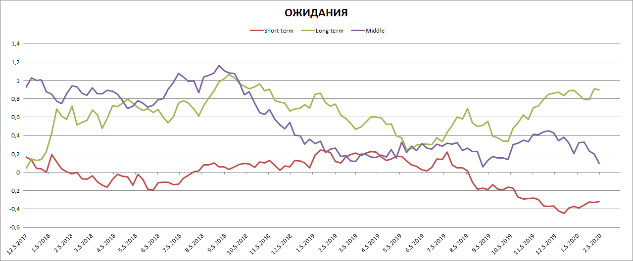 Ситуация на денежном рынке остается неоднозначной, но хуже всего, не смотря на то, что потребительская инфляция растет, а инфляционные ожидания снижаются, это создаёт риск стагфляции в экономике США. В таких условиях ФРС может устроить сюрприз и объявить QE-4, т.е. снизить ставку до ноля и озвучит план выкупа активов по кривой доходности. Только так можно запустить рост ожидаемой инфляции, но, на мой взгляд, у ФРС нет возможности это сделать до того, как пройдет эпидемия в США.