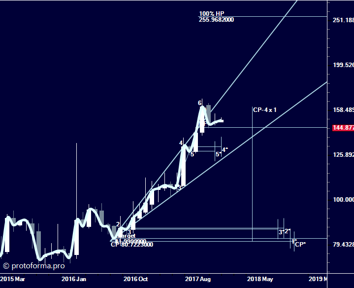 На месячном плане от т.3 квартальной модели есть "сильная" МР-ка с пробитой НР и целью 100% НР 255,96: