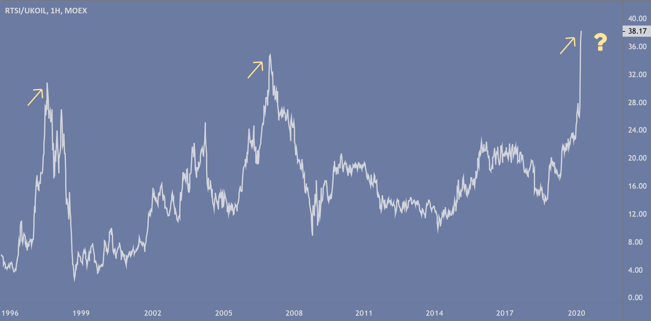 Возможно лучшей торговой идеей в рублевом пространстве 2020 является будущий лонг нефти и шорт RTSI, но не инвестиционная покупка российских акций.