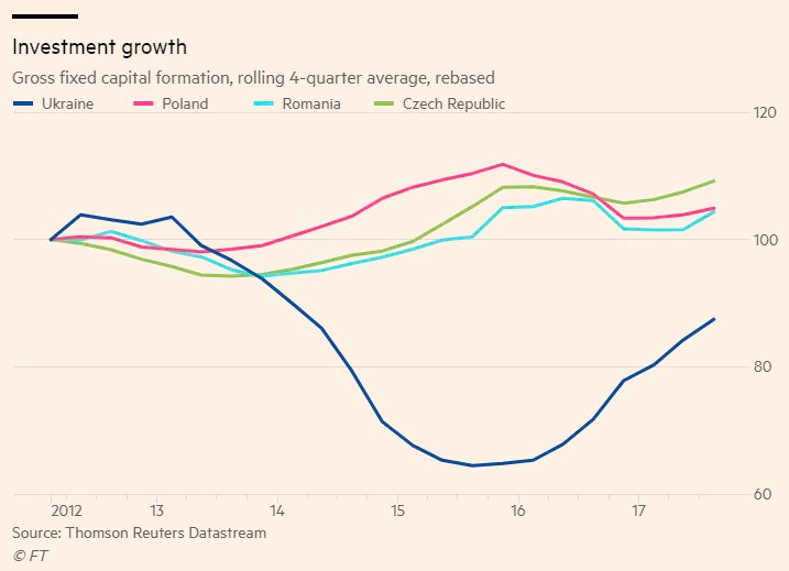 Как видим Украина единственная страна которая с 2014 года показывает ежегодное падение инвестиций.