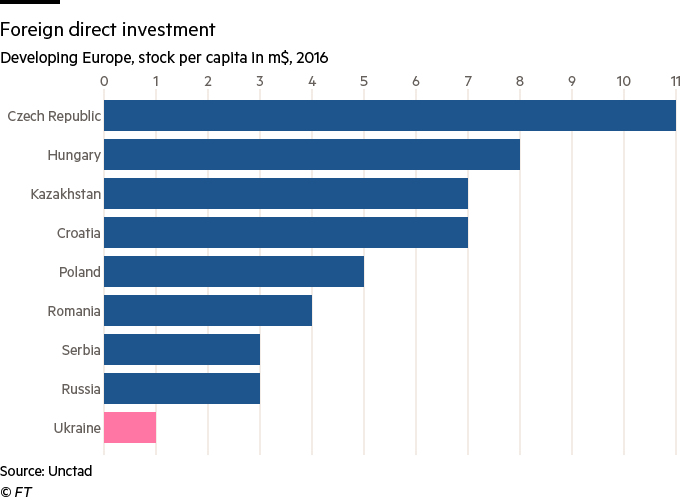 Иван Миклош, бывший министр финансов Словакии, консультирующий киевское правительство, говорит, что прямые инвестиции составляют всего 15 процентов валового внутреннего продукта Украины.