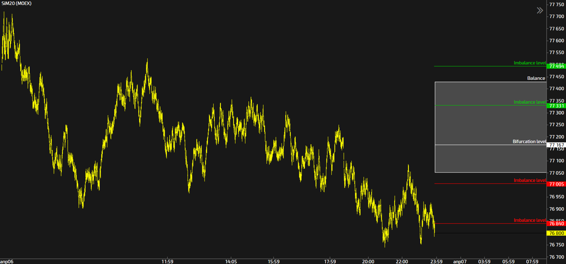 Бифуркационная зона: ценовым уровнем проторговки является 77 167.