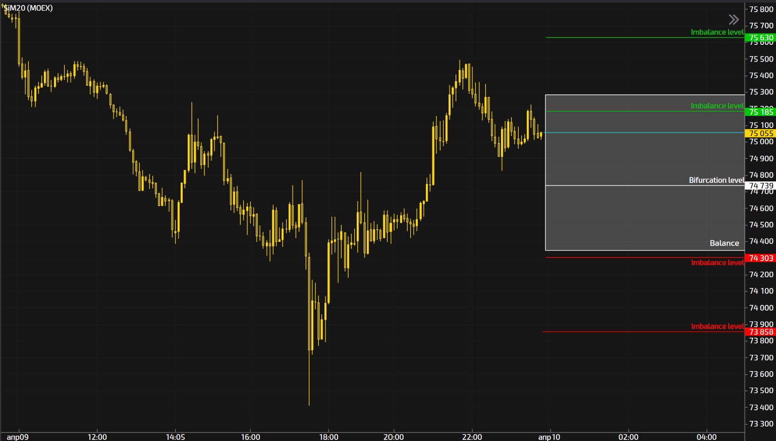 Бифуркационная зона: ценовым уровнем проторговки является 74 739.