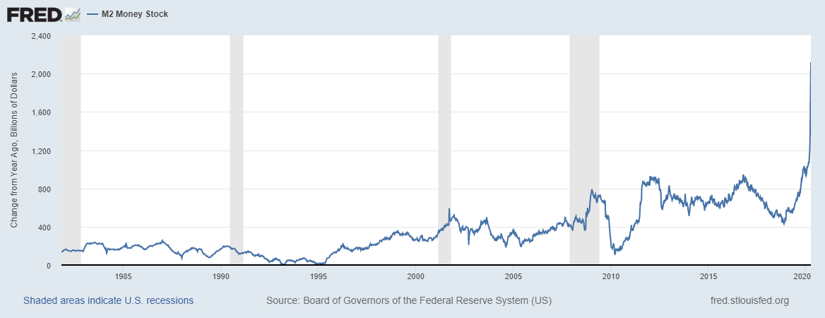 Что вытворяет ФРС, это самое масштабное QE (смягчение кредитно-денежной политики) в истории США. На неделе объявлено новую программу во имя спасения малого бизнеса и домохозяйств через кредитование. Будут выкупать токсичные долги, давать в долг пострадавшим от безработицы, прямое кредитование малого бизнеса. Объем программы 2,3 трлн долларов. Председатель ФРС Дж. Пауэлл вчера выступил с заявлением, в котором уверял, что это необходимые меры. Масштабы действий ФРС и Белого дома поражают, это уже выглядит эпически. В этой статье я ознакомлю Вас с базовыми показателями денежного рынка, и как выглядит программы спасения экономики США в цифрах и иллюстрациях.