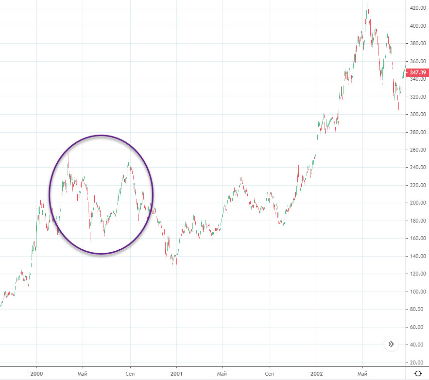 Как пример, подобная ситуация уже была в далеком 2000 году. В то время наш рынок был жутко дешевым и первое падение мы полностью закрыли за несколько месяцев: