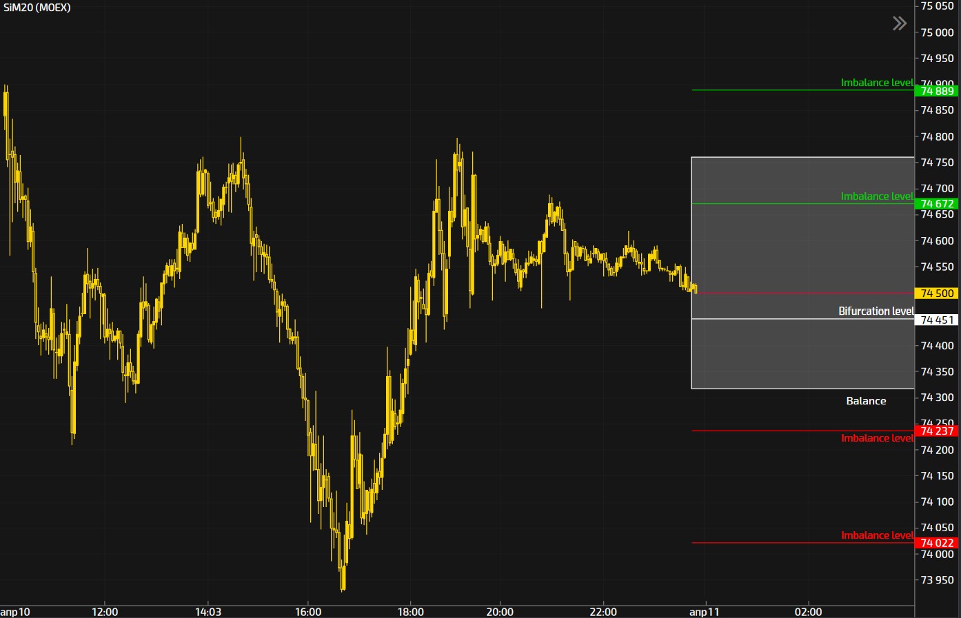 Бифуркационная зона: ценовым уровнем проторговки является 74 331.