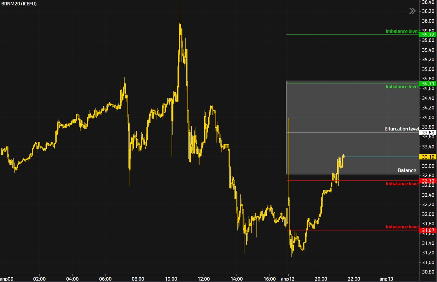 В понедельник фьючерс на Нефть марки Brent торговался в шортовом дисбалансе, достигнув отметки 30.63.