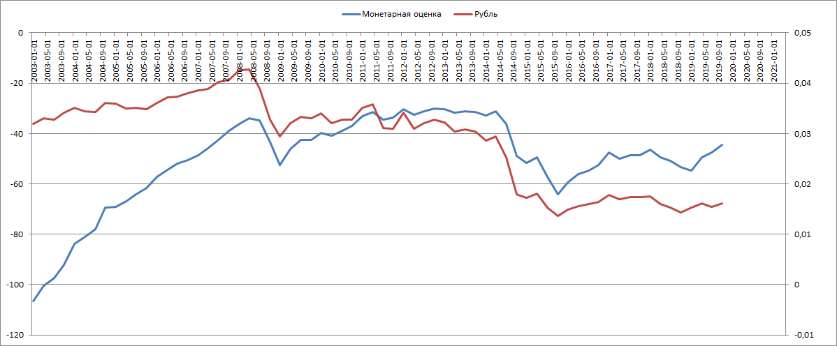 Прежде чем оценить риски для рубля и выраженных в нем финансовых активов посмотрим на еще одну теорию оценки валюты, курс согласно которой обусловлен исключительно эндогенными процессами. Проще говоря, насколько сбалансирован внутренний денежный рынок.