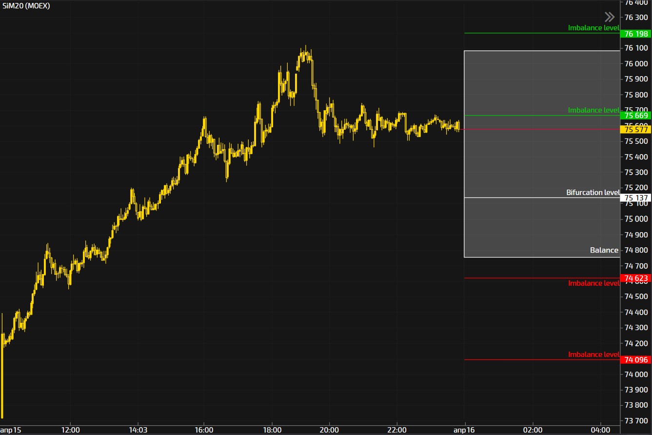 Бифуркационная зона: ценовым уровнем проторговки является 75 137.