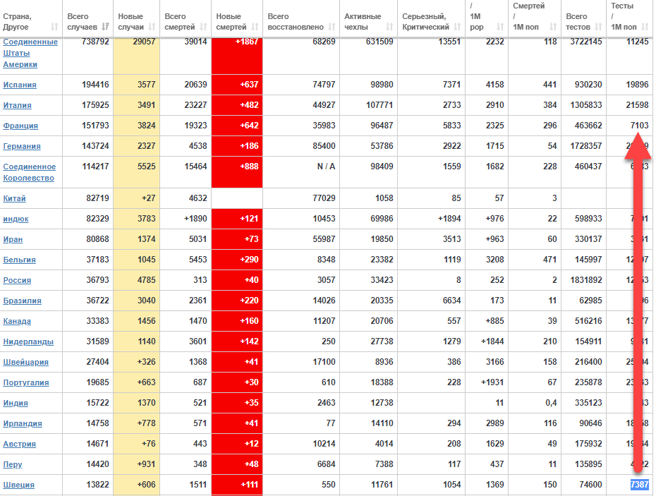 Ну давайте сверим с ними и с Норвегией по данным www.worldometers.info/coronavirus/
