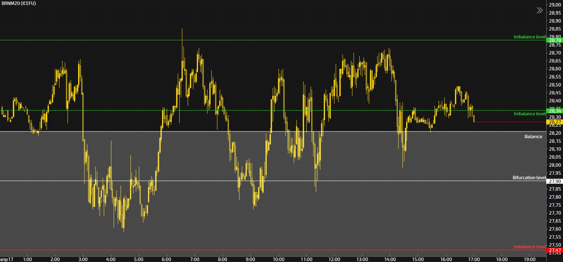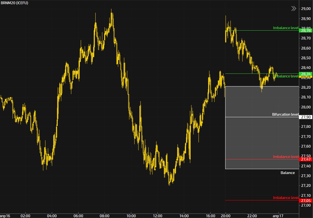 Как использовать данную информацию в процессе торговли? Прежде всего, как контекст рыночной ситуации, например когда цена находится выше бифуркационного уровня, за пределами верхней границы баланса, то при наличии лонгового сетапа — лонги предпочтительнее.
