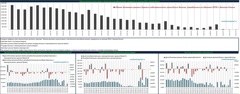Объема долговых ценных бумаг в собственности российских банков, переданных по сделкам РЕПО с Банком России, по данным статистики ЦБ. 2015 - 2017 г.: