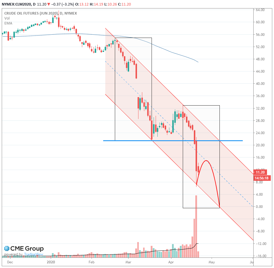 Отсюда вопрос, как торговать-то? Ответ напрашивается сам собой — никак. Рынок нефти разрушен и будет построен новый рынок, который будет отличаться от прежнего, например уже объявлено о запуске опционов с отрицательными страйками на СМЕ, и это только начало. Я вот думал, как не помешать спекулянтам и инвесторам купить нефть на минимумах, была версия мурыжить временем, но это точно высокий риск экономического кризиса, а вон как, просто надо все разрушить, что бы не возможно было оценивать риски, т.к. новой теории еще нет, но скоро ее напишут.