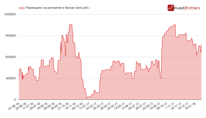 В общей сложности сейчас на вкладах в кредитных организациях находится 777,5 млрд рублей.