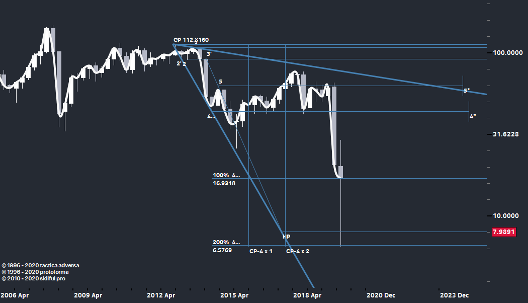 Кроме того что это было аномальное событие (отрицательные цены на нефть) это было классическое достижение уровня НР МР (модели расширения, данная модель и сценарии отработки были рассмотрены ранее). Изучающие метод анализа Тактика Адверза помнят, на уровне НР (подробней об уровне НР и длине "тени" свечи достигающей уровень НР см. в "Школе искусств" на нашем сайте) нет ликвидности в буквальном смысле этого слова.